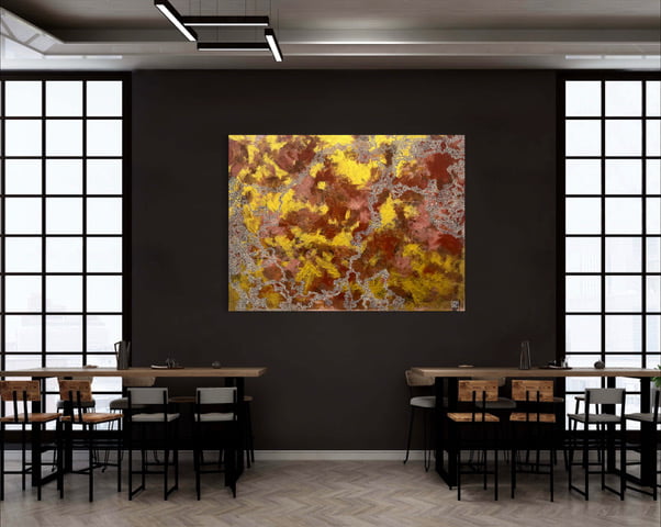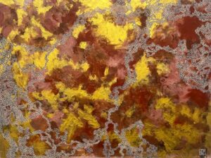 L’or et la Terre – Gold and Earth Leave a Comment / By artjb8.com / 30/05/2024 L’or et la Terre – Gold and Earth, Gold pigments, Charcoal from wildfires in L’or et la terre, Gumbaynggirr forests, Gumbaynggirr country, French and Italian pigments 121 x 160 signature L,or et la terrein situ l’or et la terre